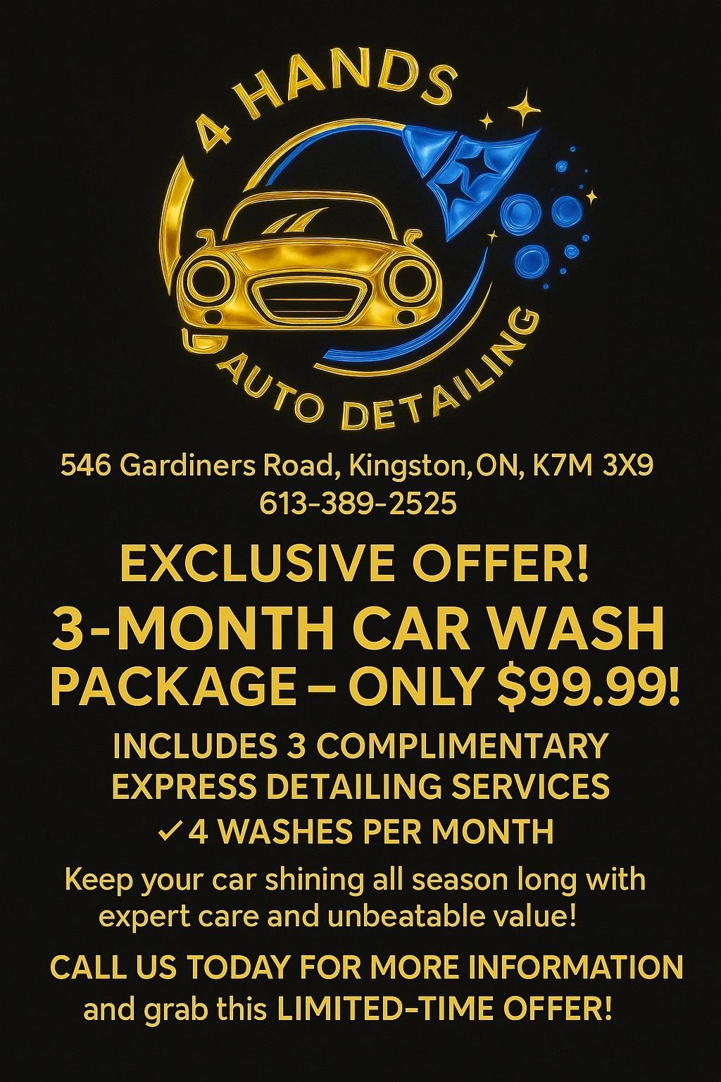 At 4 Hands Auto Detailing, we believe your car deserves more than just a wash — it deserves precision, care, and a brilliant finish. Proudly locally owned and operated in the Kingston area, we are passionate about delivering the highest quality car detailing services with a personal touch.